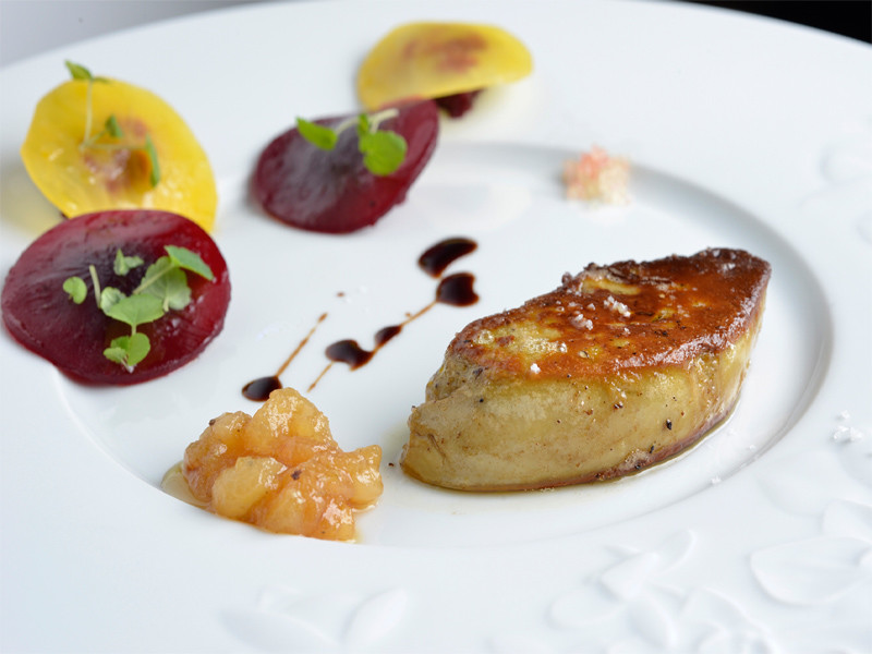 Foie gras de canard poché au floc rosé