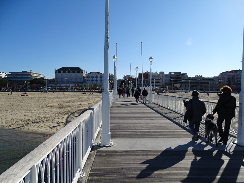 La jetée Thiers est la plus grande jetée d'Arcachon. Embarcadère Jetée Thiers : Point de départ des navettes en direction du Cap-Ferret ou de l'Ile aux oiseaux, lieu de promenade et de spectacle avec le va et vient incessant de bateaux et pinasses, c'est également le lieu de rendez vous des pêcheurs de beaux grisets (canthères), de dorades royales ou de seiches à la « turlutte ». Chacun porte en lui la nostalgie des chevaux de bois de son enfance. Installé sur la jetée d' Eyrac ce prestigieux Carrousel 1900 attend son lot d'enfants sages.