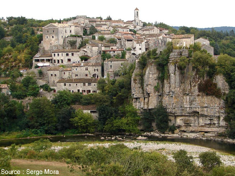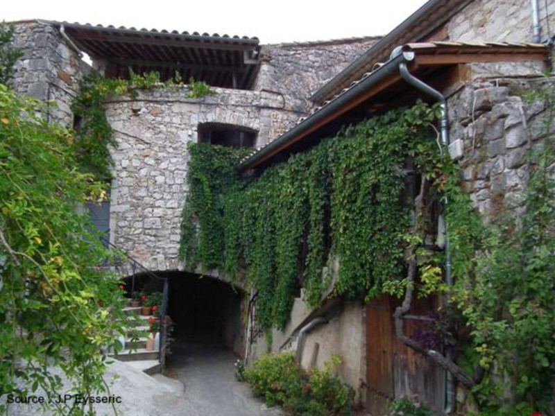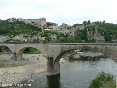 Classé parmis un des "villages les plus beaux de France.... Balazuc est un village de caractère. Situé dessus d'un méandre de la rivière et un pont du 19ème siècle, le village de Balazuc est un joli petit village qui retrace avec fierté ses origines de 50000 années - les restes d'un chasseur datant de cette époque ont été trouvés ici, dans la grotte Barasses autre côté du fleuve. Chose inhabituelle parmi les 'villages de caractère' de l'Ardèche, vous descendez à Balazuc plutôt que grimper au sommet d'une colline, car il est dans une vallée attrayante. Les falaises et les arbres entourent le village, tandis que la rivière coule au-dessous. maisons traditionnelles en pierre à Balazuc Accroché à un piton rocheux sur lequel la falaise interromp le village, Balazuc est un endroit extraordinaire à visiter et à explorer, avec une myriade de ruelles étroites, des arcs et des chemins étroits, souvent apparemment gravé directement dans la roche. Le château et l'église sont des principaux bâtiments historiques dans le village. Les ruines du château (surtout la tour) datent du 11e siècle et 13e siècle, tandis que l'église fortifiée de Sainte-Madeleine (construite en même temps que le château) a été utilisé pour une exposition d'art lorsque nous avons visité. La petite cour en face de l'église est aussi très jolie.