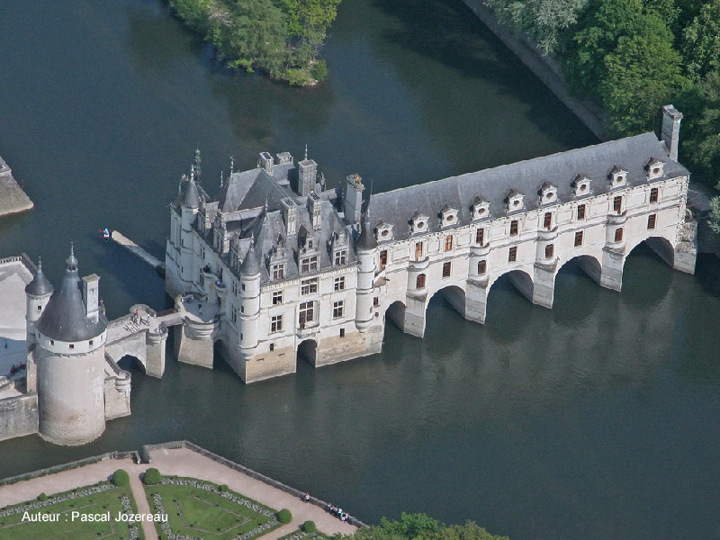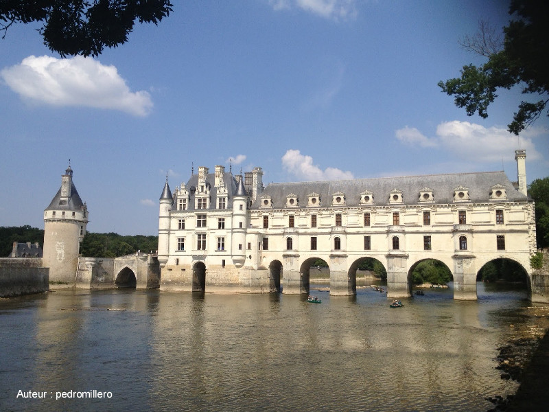 Le château de Chenonceau est, sans nul doute, l’un des châteaux les plus connus au monde, à juste titre. Il se situe au Sud d’Amboise, sur les rives du Cher. Ses arches enjambent le Cher avec grâce. Chéri par Diane de Poitiers et Catherine de Médicis, le château de Chenonceau, reste le plus visité de France après Versailles. Merveilleusement meublé, le château du XVIe siècle peut se visiter avec un iPod. Le visiteur tombe sous le charme des jardins plantés de part et d’autre du donjon… et du ravissant village, dont le nom s’orthographie avec un « x » ! Il a été bâti au début du XVIème siècle, à l’emplacement d’une ancienne forteresse médiévale, dont il ne reste que la tour Ronde, située devant le logis Renaissance. Trois femmes ont contribué à sa magnificence : Catherine Briçonnet, Diane de Poitiers, favorite d’Henri II et Catherine de Médicis. NB : La visite du château est disponible en 11 langues sur l’App Store et les jardins du Château sur Google Street View