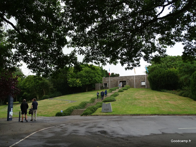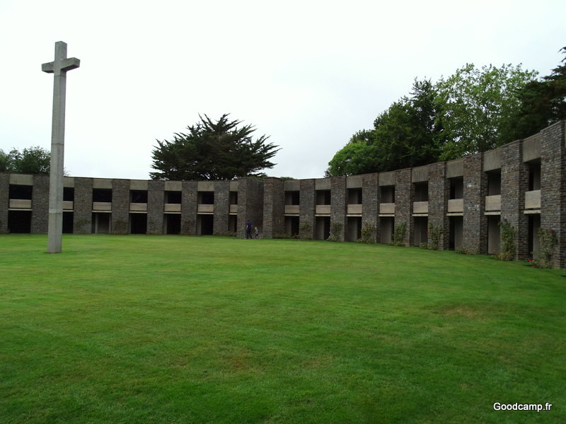 Située sur une colline de 30 m de hauteur à 1 km du village de Huisne-sur-Mer, le cimetière militaire allemand du Mont de huisnes occupe une position dominante sur le fond de la baie du Mont St Michel.