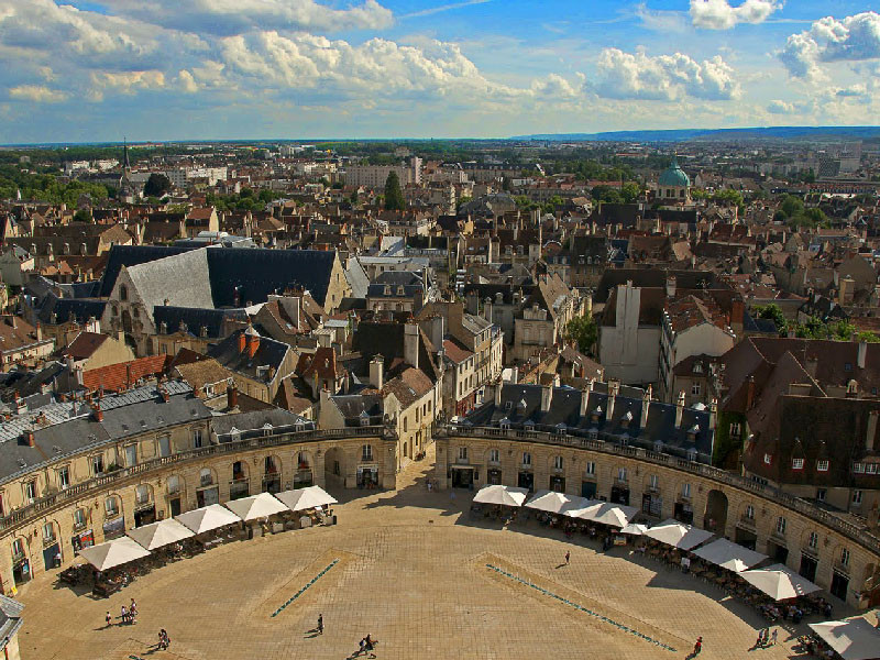 Dijon, capitale des ducs de Bourgogne et labellisée « Ville d’Art et d’Histoire », son agglomération compte plus de 250 000 habitants, ce qui la place en 18ème position des villes de France. Son centre-ville à taille humaine et ses nombreuses rues piétonnes où il fait bon se balader, resteront pour vous un moment privilégié. A visiter : - Ses nombreuses richesses historiques et culturelles lui ont permis d’être, mettant ainsi en lumière la conservation remarquable de ses nombreux bâtiments historiques comme ses cours intérieures qui se comptent par centaines et que les visiteurs peuvent découvrir au détour des ruelles. - Clochers et autres édifices religieux ont aussi envahi la ville au 17e siècle, lui donnant ce surnom de « ville aux cent clochers ». Et ce n'est que justice puisque cette belle et grande cité rayonne depuis fort longtemps comme centre économique, géographique et historique. Du Castrum romain à la cité médiévale entièrement détruite par l'incendie de 1137, puis à la ville miroir du développement des églises chrétiennes et enfin à la cité au rayonnement culturel et artistique international au XIVème, Dijon a vécu des heures plutôt mouvementées... Ce sont les Ducs de Bourgogne puis les Princes de Condé qui ont donné à Dijon son importance, et donc sa prospérité. Symbole d'élégance, le vieux quartier vous emmènent du côté du Palais des Ducs et des hôtels particuliers du XVème, notamment rue des Forges : hôtel Chambellan, Maison Milsand. Ce sont aussi de jolies maisons à colombages place François-Rude ou encore rue de la Verrerie qui retiendront votre attention. Ne manquez pas les églises qui fort nombreuses ne pourront vous échapper : la cathédrale Sainte Bénigne, l'église Saint Michel ou l'église Saint Philibert, de style gothique. Les musées de Dijon sauront vous la raconter tels le musée de la vie bourguignonne, le musée Amora ou encore ceux des Beaux-Arts et de l'archéologie... Cette ville recèlent de multiples petits trésors qu'il faut savoir découvrir. Monument emblématique de Dijon, le palais des ducs de Bourgogne se dresse fièrement au cœur du centre historique, faisant face à la place de la Libération. Voilà un lieu paisible et aéré où il fait bon se détendre et laisser les enfants profiter des fontaines ultramodernes, le tout, assis à l’une des terrasses de cafés. Le palais des ducs de Bourgogne a pu jouir d’une architecture soignée grâce aux ducs Valois de Bourgogne qui ont érigé, petit à petit, les différentes parties du palais. Ils ont également permis d’offrir à Dijon un rayonnement européen non négligeable de part leur sang de lignée royale. Le puits de Moïse, datant du début du XVème siècle, est également un monument à ne pas manquer. Sur cette sculpture de sept mètres de haut réalisée par Claus Sluter, sont représentés les six prophètes de l’Ancien Testament : Moïse, Isaïe, Daniel, Zacharie, Jérémie et David. C’était auparavant le socle d’un calvaire disparu à la fin du XVIIIème siècle, la colonne se trouve au milieu d’un bassin d’eau alimenté par la nappe phréatique, une passerelle en contrebas permet d’observer et d’apprécier les détails minutieux et maîtrisés de l’œuvre. Cette sculpture aux visages très expressifs provoqua une véritable révolution pour l’époque mais ce style audacieux fut ensuite utilisé par de nombreux sculpteurs. La rénovation récente de ce chef d’œuvre a permis de redécouvrir la polychromie impressionnante des vêtements des prophètes et des anges, encore bien conservée malgré les siècles passés.