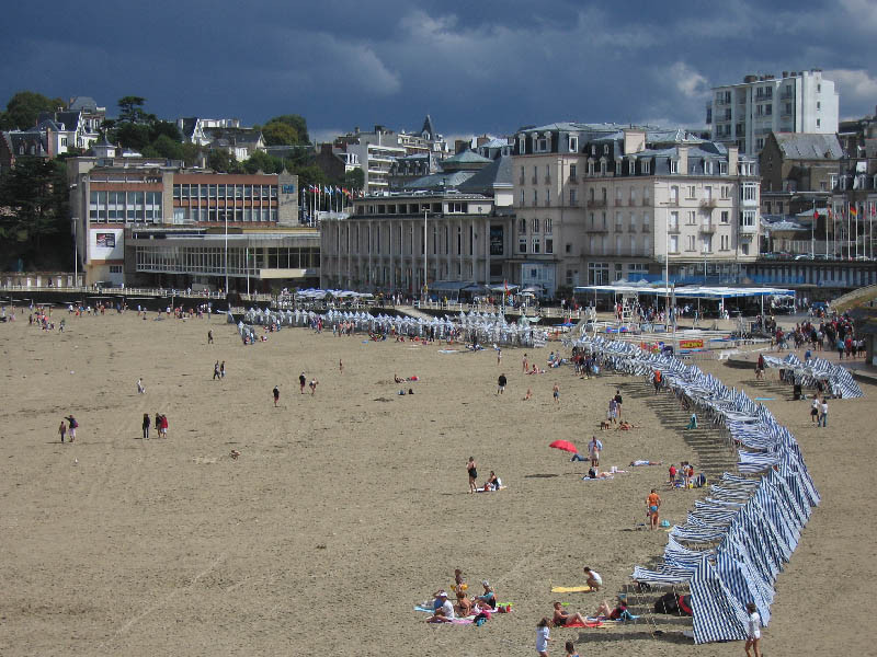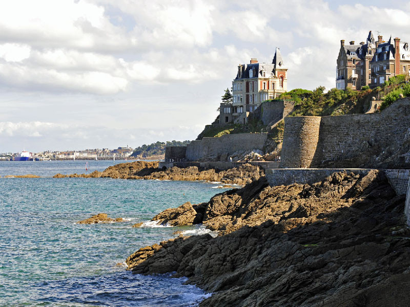 Dinard était un modeste village de pêcheurs et d'agriculteurs mais un vue sur une magnifique baie, un micro-climat présent (la végétation rappele parfois plus les rivages de la Méditerranée que ceux de la Bretagne), une côte découpée ..... Des riches acteurs de la jet-set anglaise et française se sont appropriè les lieux changeant le visage de la ville avec de jolies villas, jardins, golf (un des tout premiers en France), casino,... Dinard s'est rapidement transformé en quelques années. Une athmosphère atmosphère "so british" y est présente et plane sur les rues et les plages de la ville. Au milieu du XIXe siècle, les anglais découvrirent les premiers ce site très particulier de la Côte d'Emeraude A visiter : - Les villas de Dinard : Dans les années 1850, quelques riches anglais tombèrent sous le charme de Dinard. Ils y construisirent des villas luxueuses, parfois étranges et excentriques. 407 d'entre elles sont aujourd'hui classées. - Les promenades du front de mer : les promenades de Dinard suivent l'ancien sentier des douaniers sur le front de mer, se faufilant au pied des grandes villas du XIXe siècle. - Les points de vue sur la mer sont magnifiques. - La baie : Le site de Dinard est exceptionnel, face à une des plus belles baies de Bretagne, traversée par de nombreux voiliers qui naviguent entre les ilôts rocheux. Le panorama s'étend de Saint-Lunaire à Saint-Malo.
