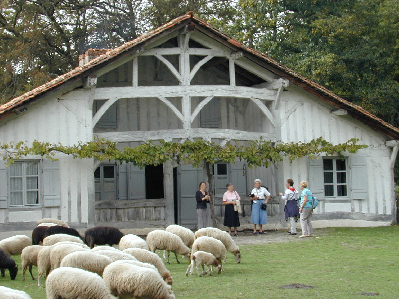 Situé en plein milieu des Landes se trouve l'écomusée de Marquèze, l'un des sites de l'écomusée de la Grande Lande. (A quelques kilomètres de sabres) Marquèze fut jusqu'au XIXème siècle une lande rase habitée et travaillée par des groupes disséminés sur la lande ayant mis en place une forme d'écomomie agro-pastorale, structurée autour de l'airial, vaste pelouse plantée de feuillus sur laquelle s'organise la vie du "quartier" : il faut un certain nombre d'hectares de lande pour nourrir tant de brebis qui fourniront tel tonnage de fumier pour enrichir les sols cultivables afin de récolter le nombre de kilos de céréales nécessaires à la fabrication de pain pour nourrir la communauté. Une forme d'autarcie (forme d'indépendance) permise par l'implantation de l'airial à proximité d'une rivière, de terrains cultivables, de la forêt et de la lande, par la répartition des métiers : laboureur, berger, meunier, boulanger et plus tardivement résinier, et par cette organisation de vie où chacun a sa place, où les travaux des uns suivent et précèdent ceux des autres, où la vie de la communauté dépend du travail de chacun et de la bonne entente de tous ! Ouvert depuis 1969, le site de Marquèze contribue à faire vivre cette culture à la fois originale pour contrer le caractère difficile et relativement inhospitalier de la lande : habitat et mobilier, outils et objets de la vie quotidienne emmènent le visiteur dans une authentique promenade historique, impression renforcée par le trajet en petit train effectué depuis le village de Sabres... Il est possible que le visiteur pourra donner un coup de main et s'essayer aux geste d'autrefois... Un programme d'activités et d'animations, tout au long de l'année, anime le site, à découvrir pour en profiter... A visiter absolument