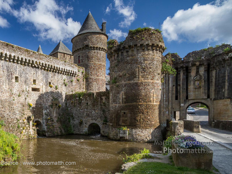 Située à la frontière entre la Bretagne et le royaume de France, Fougères est une ville accueillante ou le visiteur trouvera une ambiance médiévale, magnifiquement mise en valeur. la ville de Fougères fut très vite un enjeu statégique pour les deux puissances. Malgré la protection de son château, la cité fut souvent assiégée et changea à maintes reprises d'allégeance... Ces conflits n'empêchèrent pas Fougères de devenir un important carrefour commercial. A l'époque, ils venaient de loin pour vendre ou s'approvisionner sur ses marchés, tandis que les berges du Nançon accueillaient les ateliers de filature ou de tannerie. A visiter : - Le château de Fougères : Depuis le XIIe siècle, cette forteresse veille sur sur la ville de Fougères. Ses tours chaperonnées, ses créneaux et ses mâchicoulis lui donnent l'aspect d'un vrai château-fort de contes de fée ! - Jardins : La ville compte beaucoup d'espaces verts disséminés un peu partout. Les invitations aux promenades sont nombreuses, du Val Nançon au jardin public. Le belvédère de ce dernier offre une superbe vue panoramique sur la vallée. - Le quartier médiéval : Fougères à gardé quelques belles maisons de style, en pierres ou à colombages datant de son époque médiévale,. Ce quartier très agréable s'étend au pied des murailles du château. - L'église Saint-Sulpice : De style gothique, L'extérieur de cette église du XVe siècle se distingue par son élégance architecturale. La décoration intérieure est d'une richesse exceptionnelle.