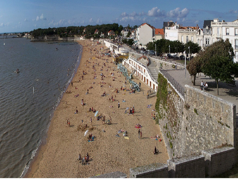 Située à l'embouchure de la Charente, la presqu'île de Fouras-les-bains étend sur 4 kilomètres ses cinq plages de sable fin, ainsi que ses trois ports, protégés des fortes houles par les îles d'Aix, Oléron et Ré. Fouras est aussi réputée pour son ostréiculture, ses moules de bouchot, la pêche à pied ou au carrelet.. Station balnéaire depuis 1850, la vogue des bains de mer du XIXe siècle a contribué à faire de Fouras-les-bains, un important centre touristique en Charente Maritime. Convoitée et plusieurs fois assaillie, Fouras se dote d'un château fort dès le XIIIème siècle qui sera maintes fois remanié. Au XVIIème siècle, Vauban le transforme en fort pour défendre le port militaire de Rochefort et son tout récent arsenal royal ! Mais l'histoire s'est calmée et Fouras est devenue au XXème siècle une station balnéaire très agréable avec son casino, son "Bois vert", et ses cinq plages de sables fins... Exposées différemment, il y en aura toujours une pour vous protéger du vent !