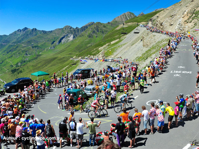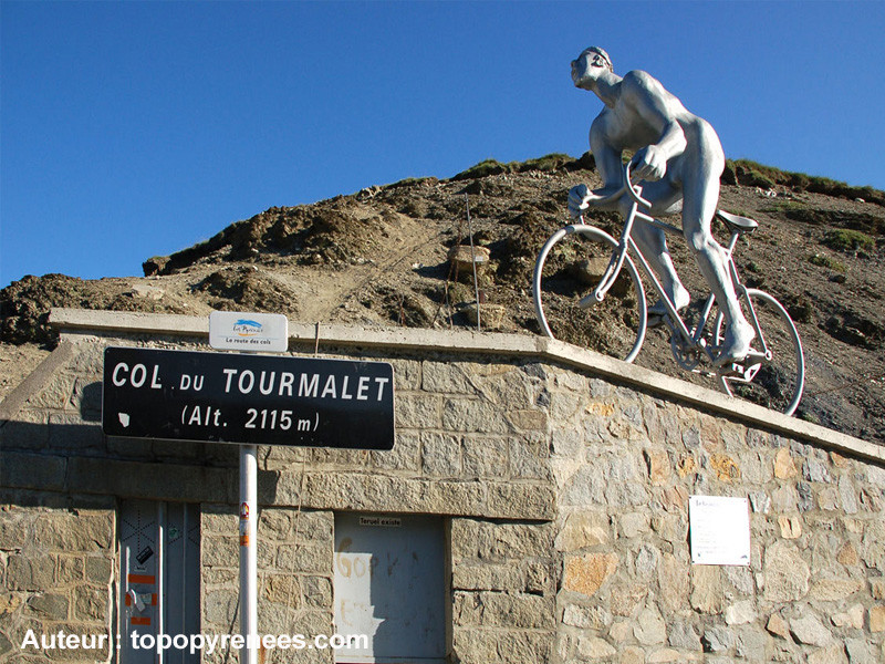 Le col du Tourmalet est le premier grand col gravi dans l'histoire du Tour de France. Versant ouest, la montée s'étend sur 18,5 km. Le départ s'effectue à Luz-Saint-Sauveur, à 700 mètres d'altitude. La pente est rapidement raide, 7,7% en moyenne, avec des pics à 10,5%. La grande majorité de l'ascension s'effectue en ligne droite. Les lacets sont donc rares et la vue dégagée. L'arrivée est jugée à 2115 mètres d'altitude après les passages les plus pentus de l'ascension. Dénivelé : 757 m (assez important), piste et sentier bien balisé Il est possible d'acceder au Pic du Midi depuis le col du tourmalet, se garer juste au dernier parking avant le col du Tourmalet. Lac d'Oncet et Pic du Midi de Bigorre Itinéraire : sentier bien tracé et balisé, panneaux aux bifurquations Départ: Au col du Tourmalet, à droite après la statue du Géant prendre l'ancienne route à péage qui conduit au pic et franchir la barrière juste après la boutique souvenirs. Construite en 1933 cette piste est aujourd'hui fermée à la circulation sauf pour le service de l'observatoire ou les bergers autorisés. La piste monte régulièrement et traverse 2 tunnels souvent encombrés par du bétail. 0h30 de marche : Arrivée au lac d' Oncet (2254 m d'altitude) suivre toujours la piste en balcon sur le lac et passer les ruines jusqu'au col de Sensours 2378m . Après une longue série de lacets arrivée la dent d'Orlu célèbre pour ces voies d'escalade 1h45: au col des laquets 2637m passer l' hôtellerie abandonnée et son vaste parking pour prendre le sentier un peu plus raide qui mène au pic 2h30: 2872 m Arrivée à l'observatoire et au sommet du Pic du midi de Bigorre (vaste panorama de la chaîne pyrénéenne, de l'andorre) Versant est (réputé être le plus difficile), la montée s'étend sur 17,2 km, toujours sur la route départementale D918. Le départ, à Sainte-Marie-de-Campan (830m), est relativement facile et en ligne droite. C'est à partir de Gripp que les choses se compliquent et que la réputation du versant se confirme. La pente vers la Mongie se raidit, sans jamais vraiment laisser de répit. L'arrivée, à 2115 mètres d'altitude, est réservée aux courageux. Il ne faut donc pas se fier à la pente moyenne (7,4%), abaissée par les premiers kilomètres d'ascension du col du Tourmalet. Une fois arrivés, les plus sportifs (ou les plus fous) peuvent également emprunter l'ancienne route à péage à pied. Elle est sinueuse, pentue et balisée jusqu'au Pic du Midi. L'ascension, 700 mètres de dénivelé, exige 2h30 de marche alors que la descente s'effectue en 1h45.