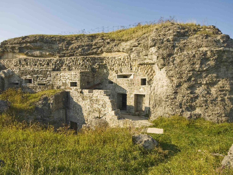 Construit en 1885 sur le point culminant des côtes de Meuse, le Fort de Douaumont est une construction incroyable. C’est le plus grand fort de la région de Verdun en 1914 : il pouvait accueillir jusqu’à 635 hommes dans le casernement équipé de deux citernes d’eau et d’une boulangerie. C’était la seule forteresse à pouvoir résister aux obus de 400 millimètres. Les murs atteignent 2,50 mètres d’épaisseur et un long réseau de galeries souterraines relie les tourelles de mitrailleuses, la casemate (le bunker) et les observatoires. Quant à l’Ossuaire, c’est une nécropole véritablement impressionnante. L’édifice se compose d’une énorme tour en forme d’obus et haute de 46 mètres sur un corps central long de 137 mètres. Cette sépulture en béton armé contient les ossements de 130.000 soldats inconnus français et allemands. Au pied de ce sanctuaire perdu en plein cœur d’un champ de bataille, un cimetière militaire abrite 16.142 tombes de soldats identifiés. Un site militaire majeur qui impressionne durablement le visiteur.