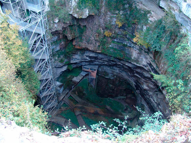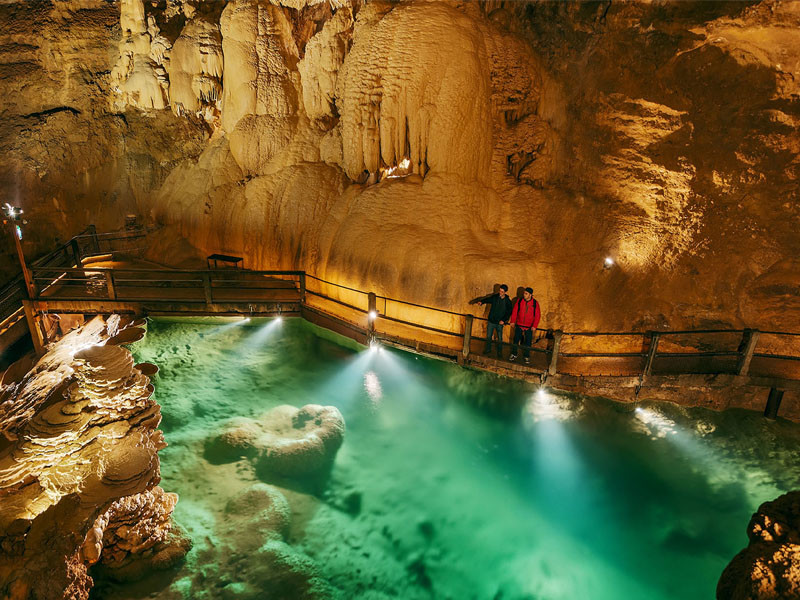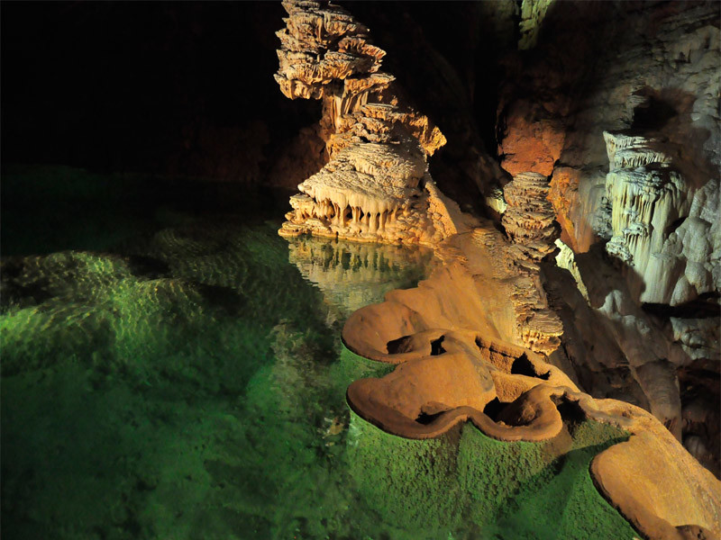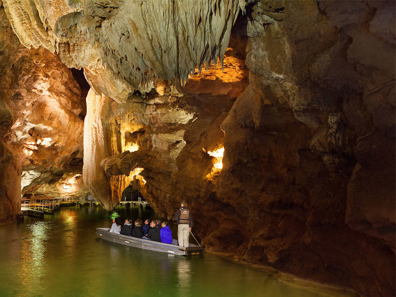 le Gouffre de Padirac est classé "premier site" du patrimoine sousterrain français. Il est considéré comme l’une des plus grandes curiosités géologiques de France. Cavité naturelle d’un diamètre de 35 mètres et d’une profondeur de 75 mètres, ce puits gigantesque attire chaque année quelques 400.000 visiteurs. Ouvert d’avril à novembre, il accueille des curieux venant de tous les pays. On y descend par 2 ascenseurs ou pour les plus courageux, par un escalier de 455 marches d’inspiration Eiffel. La visite du gouffre commence par la découverte de galeries accessibles uniquement à pieds. On découvre une roche sculptée et polie par des siècles d’érosion. Quelques centaines de mètres plus loin, l’embarcadère apparaît. Les visiteurs prennent place par petits groupes dans des barques de 11 personnes. La visite se poursuit au fil de l’eau. La rivière d’habitude profonde de 40 cm se transforme en lac de 4 mètres de profondeur appelé Lac de la Pluie. Apparaît alors une stalactite de près de 60 mètres de hauteur. Suspendue à quelques centimètres de la surface de l’eau, les larmes de pluie coulent le long de la Grande Pendeloque, ne laissant derrière elle que le son des gouttelettes sur l’eau. Après une promenade bercée par le clapotis de l’eau, c’est un spectacle grandiose qui apparaît. Au Lac de la Pluie la Grande Pendeloque est là, majestueuse et saisissante du haut de ses 60 mètres elle semble comme suspendue à la surface de l’eau y cherchant son reflet divin. Pour continuer dans les entrailles de la terre, il faut marcher jusqu’au Grand Dôme, véritable cathédrale souterraine de 94 mètres de hauteur où la vie s’est figée comme pour montrer combien la nature est merveilleuse, offrant des fleurs de calcaire ruisselant, des bénitiers d’albâtre, des piles d’assiettes, des drapées, de la dentelle, des stalactites, des stalagmites. En redescendant de la salle du Grand Dôme, le visiteur plonge sur la Grande Colonne, spectaculaire stalactite de 75 mètres de hauteur. Entrer dans la magie du Gouffre de Padirac, c’est découvrir simplement le travail et la puissance des éléments au fil des siècles. Un lieu idéal pour une sortie pédagogique en famille ou avec l’école. Le voyage au centre de la terre permet aux enfants de découvrir et de comprendre la formation des phénomènes naturels extraordinaires comme une stalactite géante de 60 mètres de haut… De quoi éblouir petits et grands !