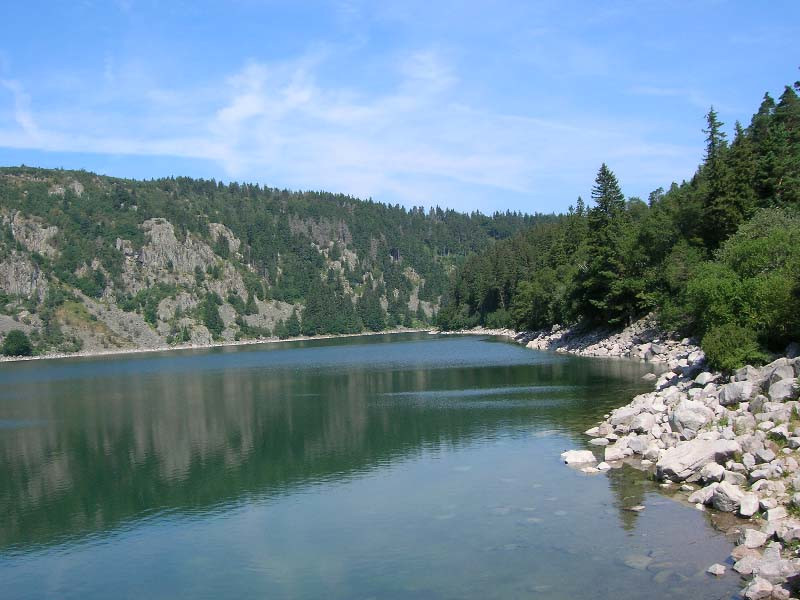 Le lac Blanc est un lac d'altitude du massif des Vosges. Il se situe sur le ban de la commune d'Orbey en Alsace. Une importante roche appelée Rocher Hans domine le lac, elle-même coiffée d'une statue de la Vierge. Le lac est entouré de chemins de randonnée balisés par le Club vosgien. Une école d'escalade est installée au Rocher Hans. Des cascades de glace allant jusqu'à 100 mètres de hauteur sont visibles en hiver dans les environs du lac. Le Lac Blanc dispose d'une station de sports d'hiver, où sont pratiqués le ski alpin, le ski de fond, la raquette à neige et, à destination des plus jeunes, la luge. A quelques mètres de la Route des Crêtes, entre Plaine d'Alsace et Lorraine, la Station du Lac Blanc jouit d'une excellente situation géographique. Des centaines de kilomètres d'itinéraires balisés dédiés aux randonneurs ou vététistes, une activité hivernale très dynamique en font un des hauts lieux touristiques du Parc Naturel Régional des Ballons des Vosges. L'accès au SPN se fait en prenant ma direction de l'Auberge du Blancrupt à 1km en amont du Lac Blanc, 500m avant le Col du Calvaire. Ses caractéristiques : Coordonnées : 48° 07? 28? N 7° 05? 40? E Altitude : 1 055 m Surface : 29 ha Longueur maximale : Largeur maximale : Profondeur maximale : 72 m