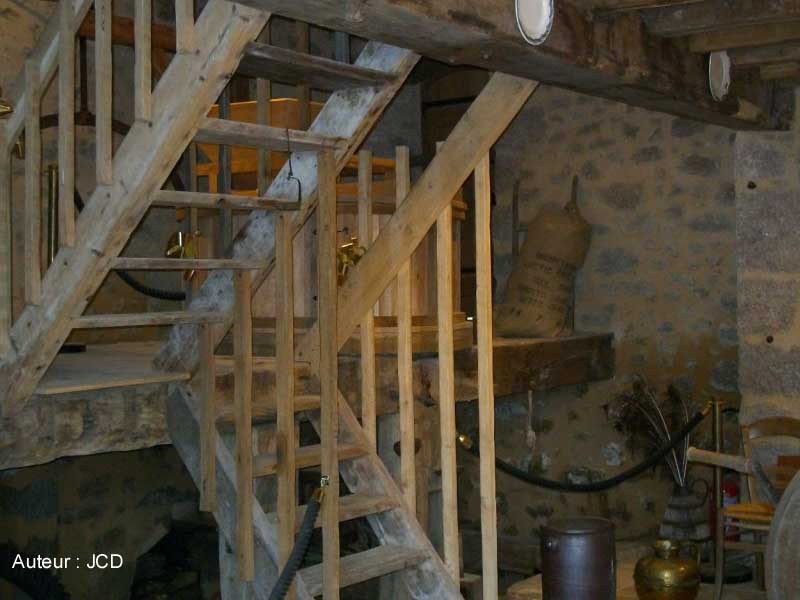 La charpente, entièrement refaite est en chêne. Grâce aux récentes restaurations effectuées sur le site, le moulin est maintenant capable de produire sa propre farine.