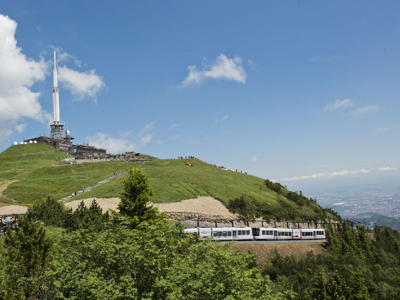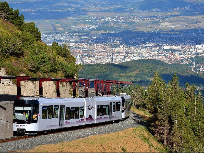 Le train à crémaillère du puy de Dôme, un voyage au sommet des volcans ! Grâce au Panoramique des Dômes, train électrique à crémaillère, offrez-vous un voyage vers le point culminant de la Chaîne des Puys et venez admirer un paysage aux couleurs et lumières sans cesse renouvelées. Découvrez ou redécouvrez ce site naturel grandiose labellisé GRAND SITE DE FRANCE réaménagé dans un souci majeur de préservation. Au cœur du Parc Naturel Régional des Volcans d’Auvergne, le puy de Dôme vous offre de multiples activités pour petits et grands : Panorama exceptionnel à 360° Espaces d'interprétation Temple de Mercure Balades au sommet Tables de lecture du paysage