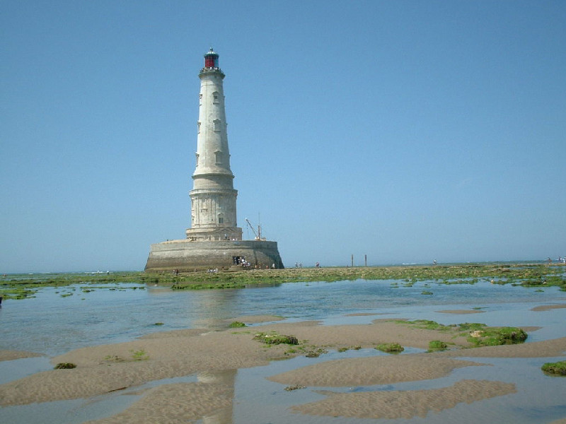 Le Phare de Cordouan est situé à l'entrée de la Gironde (à la pointe de grave) faisant parti de la Gironde (commune du Verdon-sur-Mer) * Quelques caractéristiques : Hauteur 68 mètres Portée de la lumière (lanterne) : 40 km env. Tour en pierres de taille 311 marches pour atteindre la lanterne Ceinture de pierre, bastion circulaire, de 41 mètres de diamètre et de 8,30 mètres de hauteur qui protège l'édifice de l'océan Chaussée empierrée de 260 mètre de long pour apporter vivres et matériels, accessible à marée basse depuis un petit débarcadère. Le phare de Cordouan, depuis la côte, de Saint-Georges-de-Didonne à la Palmyre, attire tout naturellement notre regard, de jour comme de nuit. Le jour, c'est sa silhouette élancée qui se détache parfaitement sur l'horizon ou que l'on devine dans la brume, la nuit, c'est bien sûr son feu et son rythme immuable, trois occultations (2 et 1) toutes les 12 secondes, qui nous fait un clin d'œil. Ne vous contentez pas de cette vue à distance, le phare est à environ 7 km de la côte, il est possible de la visiter. Passez une belle journée en visitant le phare, cela vous fera un très beau souvenis de votre séjour sur la côte atlantique. La visite du phare de Cordouan Après la chaussée empierrée, on atteint la plateforme du bastion circulaire par une poterne et un escalier. Au rez-de-chaussée, un portail monumental donne accès au vestibule où commence l'escalier qui monte à la lanterne. Ne soyez pas trop effrayés par ce nombre impressionnant de marches. A la différence d'autres phares où l'escalier est sans fin, étroit et collé à la paroi, l'escalier du phare de Cordouan est du style monumental avec des paliers permettant de faire des pauses tout en découvrant les richesses de l'édifice. Prenez aussi le temps de découvrir à travers chaque fenêtre ouverte sur l'extérieur, l'espace lunaire qui s'étale en bas sous vos yeux, à perte de vue. 1er étage: l'appartement du Roi 2ème étage: la chapelle 3ème étage: la salle des Girondins 4ème et 5ème étages: paliers La lanterne : enfin, vous êtes arrivé!!! le balcon de la lanterne offre de magnifiques vues sur l'estuaire de la Gironde, la Pointe de Grave et Le Verdon-sur-Mer, la côte girondine, Soulac-sur-Mer, l'Amélie-les-Bains, la côte charentaise, de Saint-Georges-de-Didonne à la forêt de La Coubre.