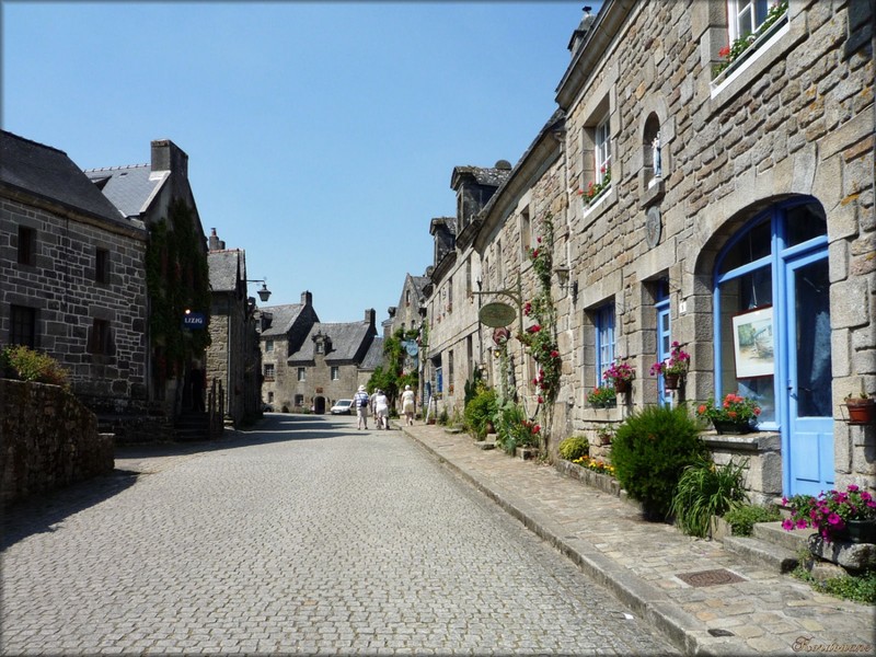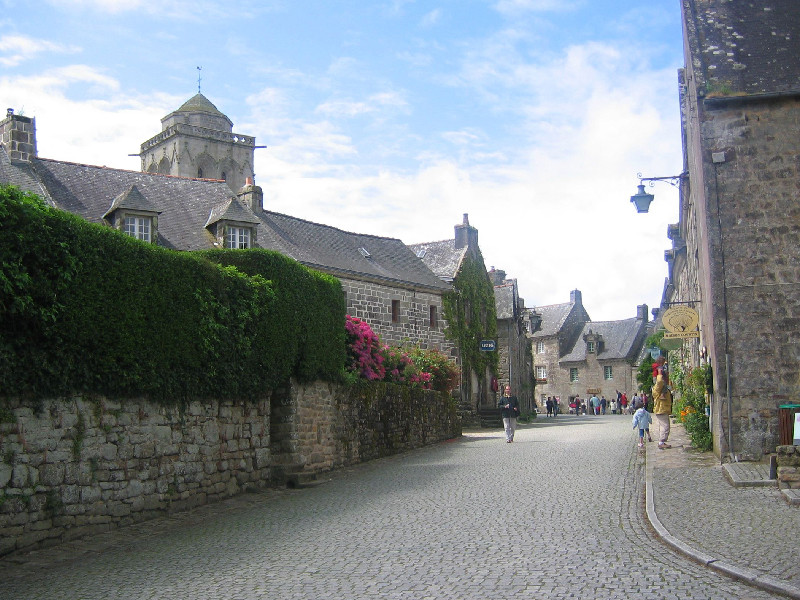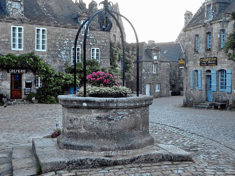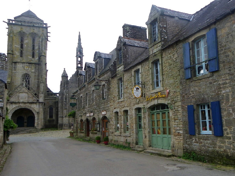 Classé parmi les "Plus beaux villages de France" et "Petite cité de caractère", Locronan semble avoir été protégé par un charme qui l'aurait placé à l'écart du monde contemporain. En arrivant sur la Grande Place, c'est comme si vous franchissiez un rideau pour entrer dans le XVIe siècle. Il manque, bien sur, les acteurs des l'époque, les hommes, les chevaux, les carrosses.....mais la magie opère toujours par la présence des puissantes et hautaines demeures de granit qui font face au regard de l'impressionnante tour de l'église Saint-Ronan. En été, la procession des Troménies ouvre un autre voile sur un passé bien plus lointain encore. Cette marche, haute en couleurs avec ses multitudes de bannières qui flottent au-dessus d'une foule vêtue de costumes traditionnels, est la réminiscence du pardon et de la vie de Saint-Ronan, le fondateur légendaire du village. - L'église Saint-Ronan et la chapelle du Pénity : Ces deux monuments adjacents (et dont l'intérieur communique) se dressent sur la place centrale. Vous y verrez un riche mobilier et des vitraux exceptionnels. La chapelle accueille la sépulture de Saint Ronan. - La Grande Place : Elle est bordée de somptueuses maisons de style renaissance (XVIIe-XVIIIe siècle) qui font face à l'église. Au centre, le puit qui était le seul point d'eau potable du village. - La rue Moal (anciennement des tisserands) Cette rue part de la Grande Place pour arriver à la chapelle de Bonne Nouvelle. Son ancien nom rappele à quel point l'industrie du lin et surtout du chanvre était importante pour Locronan. - La chapelle Notre-Dame de Bonne Nouvelle : Au pied du village, les maisons s'effacent, remplacées par les arbres et les buissons. Dans ce décor champêtre, la petite chapelle de Bonne Nouvelle (XVe siècle) invite à la méditation...