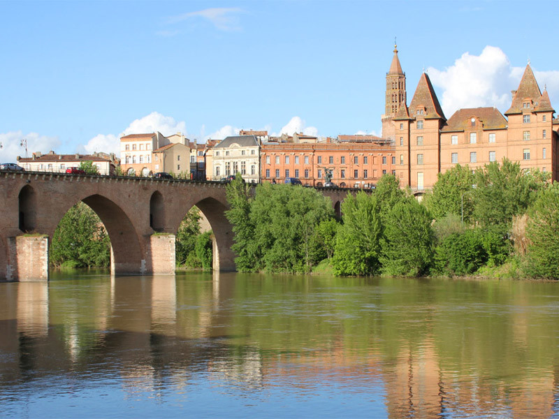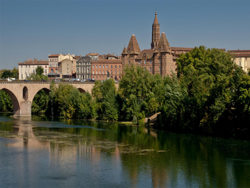 Petite sœur de Toulouse, Montauban a comme elle les traits de l'Occitanie. Tout le centre ville, où les édifices de brique sont légion, a conservé une grande homogénéité de style. Le cœur de la ville, c'est bien évidemment la place Nationale du XVIIe siècle. Bordée de maisons de brique rose, elle accueille les étals du marché et les terrasses des cafés où les Montalbanais viennent dès le matin prendre un café au soleil. Sous les doubles arcades à croisée d'ogives, boutiques et brasseries remplacent les échoppes des marchands d'autrefois (drapiers, cordonniers?). Il est très agréable de se promener dans les rues piétonnes voisines. Ville longtemps protestante, la reconquête catholique se traduit par deux monuments : l'église Saint-Jacques, dont la tour porte encore les traces des boulets du siège de la ville en 1621, et la cathédrale Notre-Dame de l'Assomption, dominée par les quatre grandes statues des évangélistes. Cette dernière abrite un tableau du plus célèbre des Montalbanais, Ingres.