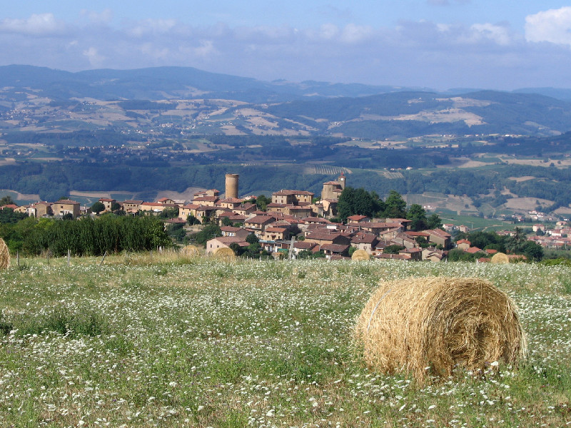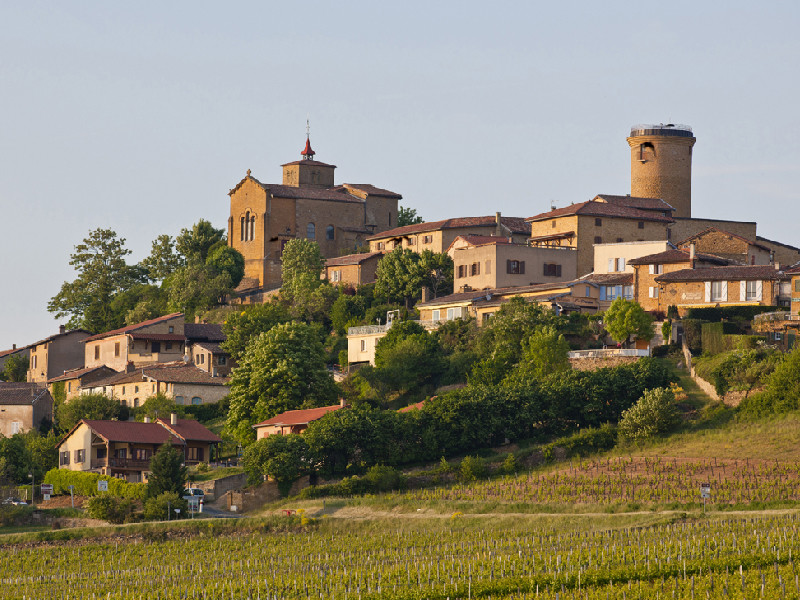 Oingt, classé parmi "l'un des plus beaux villages de France", est un village médiéval restauré, dominant la Vallée d’Azergues, au Pays Beaujolais des Pierres dorées. C'est un site médiéval au cœur du Beaujolais des Pierres Dorées, qui est devenu le premier village classé du Rhône. Présence préhistorique et gallo-romaine. Le plus ancien vicomté de la région. Le château fut démantelé par le baron des Adrets en 1562. Porte de Nizy seul vestige des fortifications 13ème siècle, avec plaque commémorant Marguerite d'Oingt. Vestige du château 12ème siècle le donjon ou Tour d'Oingt, haute de 18 m, panorama sur la vallée d’Azergues et les monts du Lyonnais depuis le donjon.