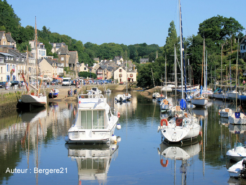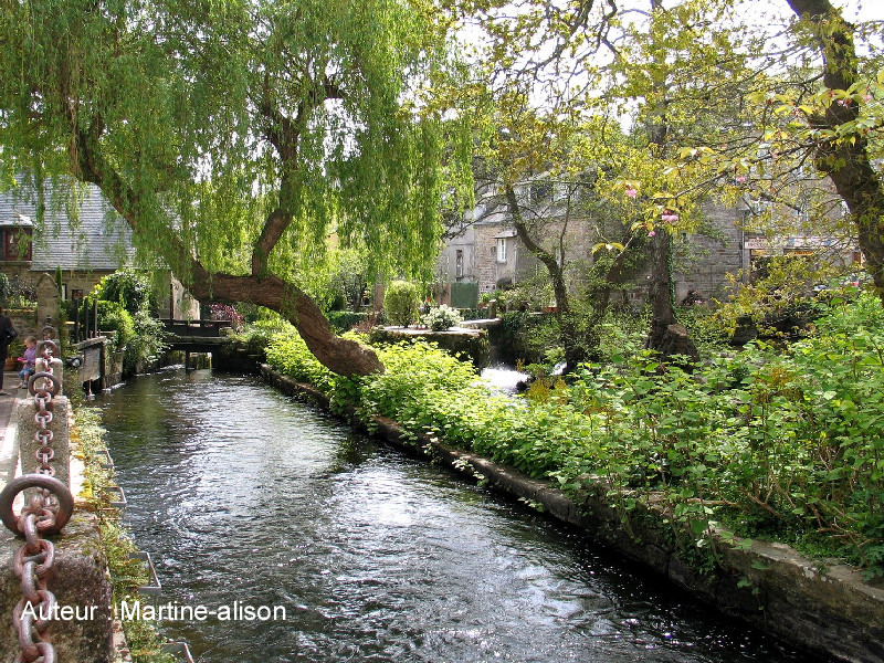 Pont-Aven - Quatorze moulins, quinze maisons ! C'est ainsi que ce village du sud du Finistère était autrefois connu. L'explication tient à son emplacement particulier : la rivière Aven permet l'installation aisée de moulins tandis que l'ouverture proche vers l'océan autorise le transport rapide des marchandises. Il n'en faut pas plus pour que les meuniers s'installe le long de ce cours d'eau si accueillant. Sans oublier un climat tempéré qui s'accorde parfaitement à une nature variée et agréable. Aujourd'hui les moulins ne sont plus en activité, mais leurs artisans ont légué aux gourmands de notre époque une délicieuse spécialité, les galettes de Pont-Aven ! À la fin du XIXe siècle, le village sera découvert par hasard par Bacon, célèbre peintre originaire des États-Unis. Subjugué par tant de douceur et de qualité de vie, il vanta suffisamment les qualités de ce coin caché de Bretagne pour y attirer une large communauté d'artistes. Le point d'orgue de cette période exceptionnelle sera atteinte avec la création de l'école de Pont-Aven, mouvement qui révolutionna la peinture et annoncera par bien des manières l'art moderne. Un jeune peintre sans le sou en était le chef de file. Il s'appelait Paul Gauguin...