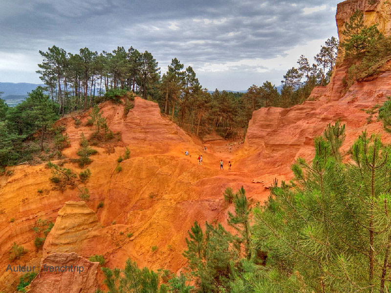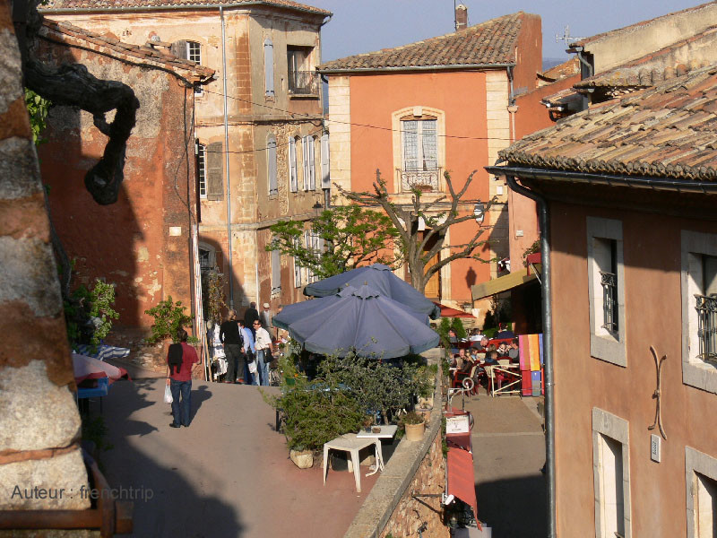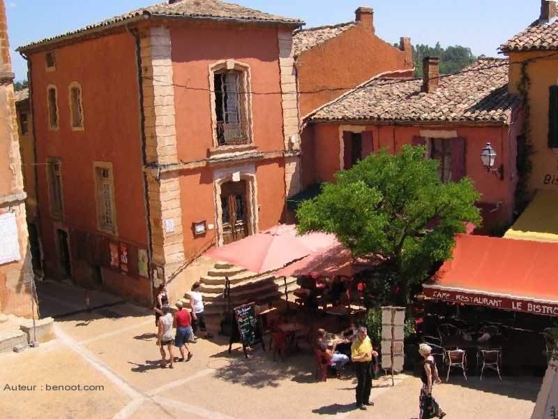 Roussillon, classé parmi "les Plus Beaux Villages de France" est situé dans le Parc Régional du Luberon. Le village est bâti au sommet d'une falaise d'ocre et offre aux visiteurs une parfaite harmonie de couleurs avec ses pierres, ses toits, et ses façades imprégnés des mêmes tonalités rouge que les paysages avoisinants. Roussillon a tiré longtemps sa richesse de l’exploitation des pigments naturels contenus dans sa terre ocre jusqu’à l’apparition des colorants synthétiques. Il faut découvrir l’histoire de cette industrie en visitant le Conservatoire des Ocres et des Couleurs installé dans une ancienne usine d'ocre. Posibilité d'apprendre tout sur l’exploitation et la transformation de l'ocre. A suivre aussi, le sentier aménagé (qui est payant) au cœur des anciennes carrières qui permet de découvrir la beauté du site et l’exubérance des couleurs aux teintes chaudes qui se découpent sur celles d’un vert intense offert par la végétation méditerranéenne. La promenade en vélo "Les Ocres à vélo" permet de faire découvrir aux visiteurs, les paysages chatoyants du Luberon.