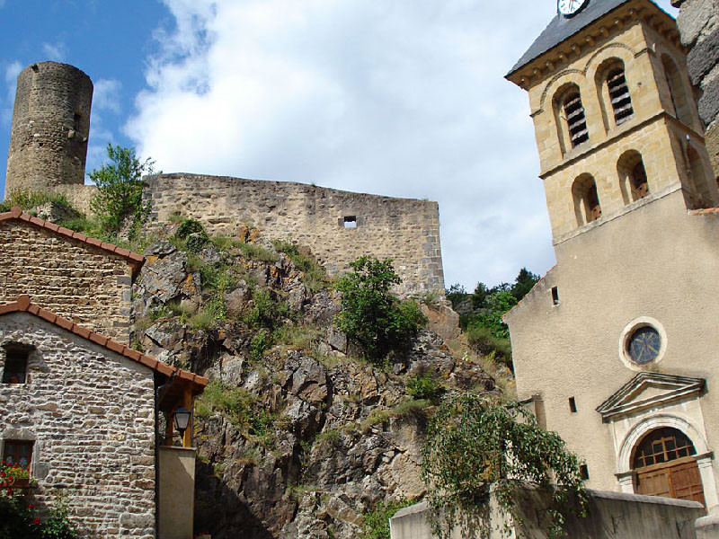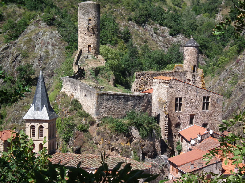 "Saint-Floret" est classé parmi les "plus beaux village de France" et s’est développé au pied d’un château féodal du XIIIe siècle adossé aux rochers. C’est en contrebas d’un château féodal du XIIIe S, dans la vallée de la Couze-Pavin que Saint-Floret a disposé ses maisons aux murs de pierres et toits de tuiles rondes. Dans le donjon du château, une salle voûtée de style gothique renferme des fresques peintes au XIVe S racontant l’histoire de Tristan et Yseut... Dans le donjon du château, une salle voûtée de style gothique, qui servit de temple aux Protestants au XVIIe siècle, laisse apparaître des fresques peintes au XIVe siècle qui retracent l’histoire de Tristan et Yseut. Marquant autrefois les limites de l’enceinte, la Couze coule sous le vieux pont de la Pède dont l’unique arche porte en son milieu un oratoire abritant une statue-reliquaire de la Vierge en majesté polychrome (XIIIe siècle). De l’autre côté de la rive, sur la butte du Chastel, s'élève une chapelle romane du XIIe siècle, au milieu d'un petit cimetière conservant un ossuaire et des tombes anthropomorphes du haut Moyen Âge. En représailles contre l’attaque d’une colonne militaire, l’aviation allemande bombarde le village le 30 juin 1944. Une grande partie du bourg ancien, et notamment du fort, est détruite et ne sera plus occupée. Le village de Saint-Floret garde les stigmates de cette période particulièrement tragique de l’Histoire. Les ruines du quartier de l’ancien fort, au pied du château, sont en cours d’aménagement et de revalorisation, pour permettre aux visiteurs de découvrir le patrimoine historique du village.