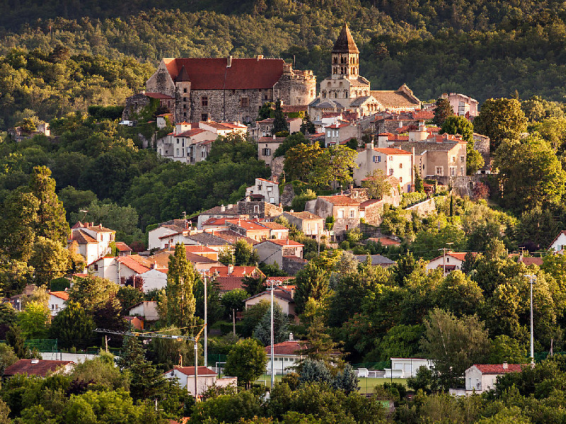 Saint-Saturnin est classé parmi les "plus beaux village de France". Le village se situe à une vingtaine de kilomètres au sud de Clermont-Ferrand, entre les gorges de la Monne et la vallée de la Veyre, Accroché à une arête basaltique, le village de Saint-Saturnin, classé parmi les « Plus Beaux Villages de France », réunit l’une des cinq églises majeures de l’art roman auvergnat et un château royal des seigneurs de la Tour d’Auvergne. Edifié au XIIIème siècle, le château accueillit Catherine de Médicis, dernière descendante des de la Tour, accompagnée de son fils Charles IX. En 1586 sa fille, la reine Marguerite de Navarre, plus connue sous le nom de reine Margot, y fut tenue prisonnière quelques jours avant d’être envoyée à Usson. Devenu institution religieuse pendant plus d’un siècle, le château subira ensuite une difficile période d’abandon et de dégradations. Remarquablement restaurée, cette importante forteresse en arkose blonde et pierre volcanique grise témoigne de l’architecture militaire du Moyen Age : douve sèche, remparts et chemin de ronde, tours à créneaux et mâchicoulis. Il a été agrandi et embelli jusqu’au XVIème siècle, sous l’influence de la Renaissance. A visiter : L’église de Saint-Saturnin, en arkose blonde avec des incrustations décoratives en lave noire, est la plus contemporaine des grandes églises romanes autour de Clermont-Ferrand. Érigée au XIIème siècle, elle n’a subi aucune dégradation et son clocher octogonal à deux étages, préservé, a servi de modèle pour la reconstruction de ceux qui avaient été détruits pendant la Révolution. A découvrir au fil des ruelles pentues et sinueuses du village, une chapelle romane, une fontaine Renaissance creusée dans la lave, des demeures nobles qui se mêlent à d’anciennes échoppes et maisons vigneronnes, des lavoirs et un travail de maréchal-ferrant sont autant de témoins de la vie rurale.