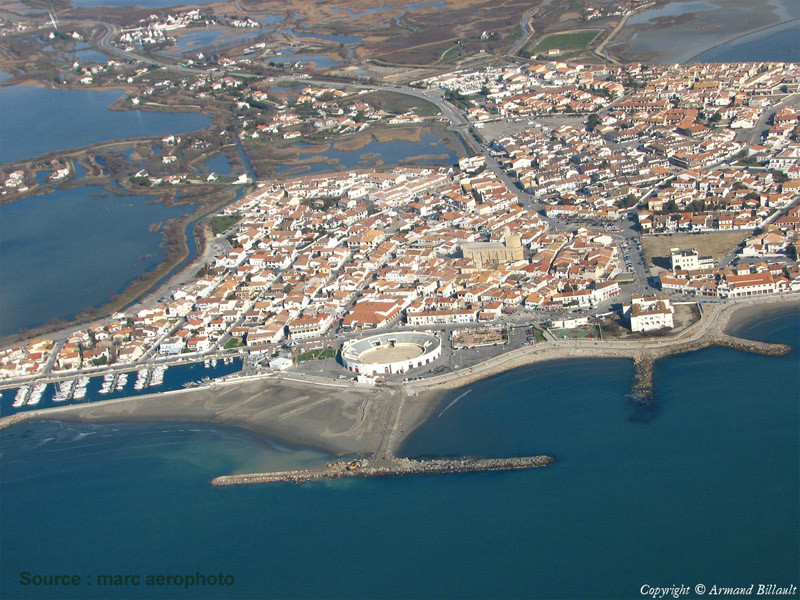 Ville située à l’embouchure du Petit Rhône, accolée à la mer et à l’étang des Launes, Les Saintes Maries de la Mer est le cœur palpitant, la capitale de la Camargue. Dans l’église conçue comme une véritable forteresse (avec tour de gardes, chemin de ronde et meurtrières) pour se prémunir des envahisseurs Sarrasins ou pirates, se trouvent les reliques enchâssées des saintes Marie-Jacobé et Marie-Salomé ainsi que de leur servante Sara, patronne du peuple Gitan. Tous les 24 et 25 mai a lieu la célèbre procession des Saintes à la mer. Tous les ans, des milliers de gitans se mêlent aux touristes et aux officiants, accompagnent "leur sainte" jusqu’au flots encadrés des gardians à cheval armés de leur emblématique trident. Les Saintes Maries de la Mer, station balnéaire avant tout, est prisée par les baigneurs pour ses kilomètres de plages, par les amateurs de planche à voile (la ville est dotée d’un "canal de vitesse" qui voit régulièrement tomber les records), les amateurs de balades à pied ou à cheval (Située au cœur du Parc Naturel Régional de Camargue).