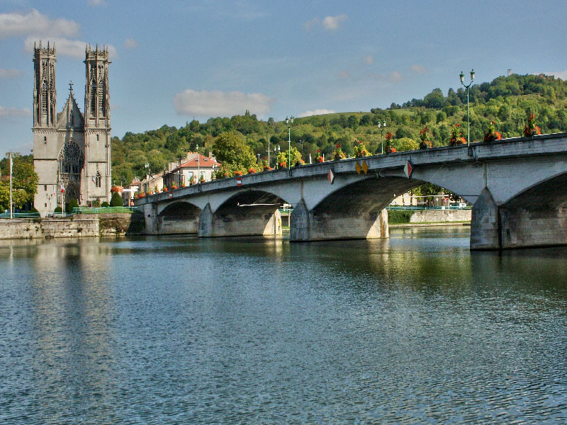 Pont-à-Mousson est une ville du nord-est de la France (les Mussipontains.) Pont-à-Mousson est située au cœur de la Lorraine , au pied de la butte de Mousson (382 mètres), ancienne place forte des comtes puis ducs de Bar. La ville est située de part-et-d'autre de la Moselle. Tour à tour place forte, ville avancée ou pays frontière, Pont-à-Mousson a souvent eu à souffrir des rigueurs de la guerre. Dans l'Antiquité, la principale voie commerciale franchissant la Moselle était située plus au sud, au niveau de Dieulouard (à l'époque Scarpone). Ce pont précurseur disparut sans laisser de traces. Les comtes de Bar, qui aux XIIe et XIIIe siècles, ne possédaient que peu de territoires autour de Mousson, se mirent rapidement, au cours du XIIIe siècle, en possession du pont sur la Moselle2. Ce lieu de passage sur la rivière, l'un des rares entre l'évêché de Toul, Nancy (capitale des ducs de Lorraine) et l'évêché de Metz, vit se développer un début d'agglomération relativement modeste. Ce n'est qu'à partir du règne du comte Thiébaut II de Bar que la ville allait véritablement prendre son essor. En effet, ce-dernier fonda, le 20 avril 1261, la ville-neuve de Pont-à-Mousson 2, affranchissant la ville à la Loi de Beaumont3. Pont-à-Mousson allait, dès lors, prendre une place majeure dans les possessions des comtes, puis ducs de Bar. Effectivement, la ville, qui s'entoure de remparts, devient l'une des principales places commerciales.